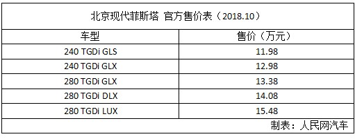 人民网烟台10月19日电(鄂智超)日前,北京现代旗下全系轿跑车型菲斯塔(LA FESTA)正式宣布上市。新车将搭载1.4T(240 TGDi)与1.6T(280 TGDi)两款涡轮增压发动机,共推出5款车型,售价区间为11.98万-15.48万元。