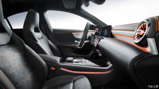 内饰方面,该车采用了奔驰家族,的设计语言。具体来看,其中控台配备了由全液晶仪表与中控显示屏组成的一体式大屏,从而营造出,科技质感。同时,新车还采用了与全新CLS相同的空调出风口造型、全新三辐式多功能方向盘,视觉效果得到很好的提升。此外,根据该车方向盘上的按键,预计其将配有全新的MBUX人机交互系统。此外,其内饰也在中控台、门饰板、空调出风口等处加入橙色元素进行妆点,让其整体看上去十分年轻。