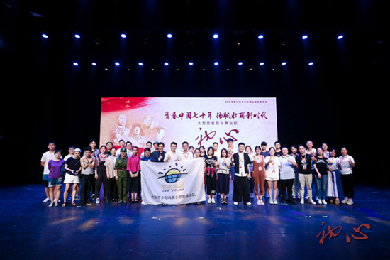 人民网北京7月29日电 日前,“青春中国七十年,扬帆壮丽新时代”——2019第九届中关村国际青年艺术季暨大型原创历史题材舞台剧《初心》在中华世纪坛剧场隆重上演,来自16个国家的外国留学生、海淀的30余所高校大学生及党员群众欢聚一堂,喜迎新中国70周年华诞。