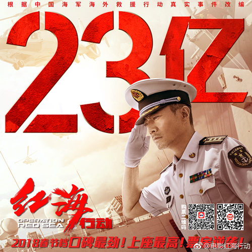 【文艺星青年按】今年春节档,票房和口碑双丰收的《红海行动》让影迷们看得酣畅淋漓。“蛟龙越洋跨海追风,逐浪止烽烟”,截止2月27日,影片已经拿到了高达23亿的票房。