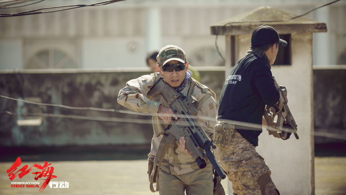 所有的保障,关于舰艇、关于飞机、关于所有军事预算这一块都是王强老师带领团队配合完成的,因为由于在摩洛哥拍摄期间难度太大了,所以延期了一个月。导致回国拍摄的时候正好赶上台风季节,经常台风来袭,又给导演和整个剧组的拍摄增加了特别大的难度。
