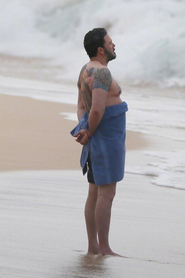 这个凤凰纹身最早在2016年被人发现,当时阿弗莱克坚称这只是一个为电影准备的临时纹身。《纽约客》在文章中说,自从2015年离婚后,许多狗仔拍摄的照片都呈现了一个“悲伤的阿弗莱克”——从孤独的洗车背影,到电影采访时的低气场,都暗示了他生活过的不太好。