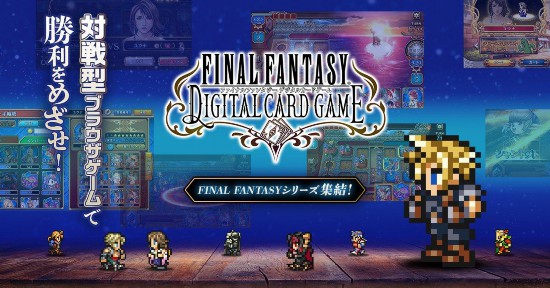 《FINAL FANTASY DIGITAL CARD GAME》是一只以人气RPG 游戏《FF》系列为主题的卡牌对战游戏,玩家可以透过PC 或手机进行游戏,本作收录《FF》系列历代游戏角色,包括《FINAL FANTASY VII》、《FINAL FANTASY X》、《FINAL FANTASY 狮子战争》等等多部名作。