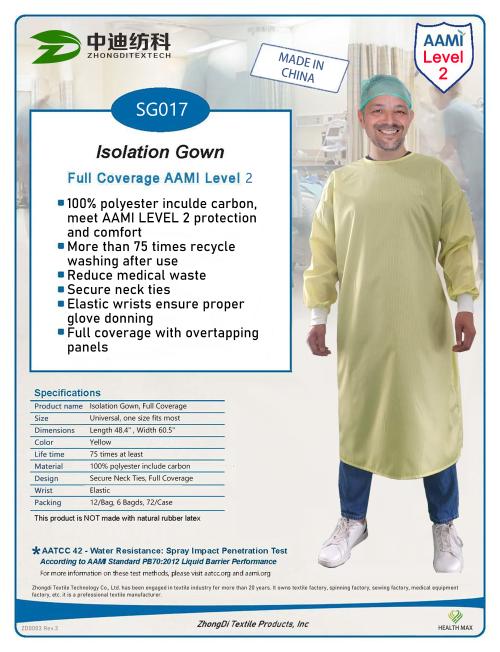 中迪纺科旗下拥有专业做医疗软器械的生产厂家,目前拥有重复使用型刷手衣,隔离衣,手术服,防护服,KN95民用防护口罩等类目。在专业机构测试,根据美标AAMI PB70 & AATCC96反复洗涤测试75次后,依然达到相应标准。目前公司主要医用软器械的产品为重复使用75次的1级,2级,3级防护隔离衣,手术衣,防护服,包布,洞巾,KN95民用口罩等。疫情逐渐退却,目前已经进入后疫情时代,普通一次性防护用品存放时间为2年,而重复使用医疗防护品的存放周期大于5年,能大大量减少医费的产生,是医疗物资备用的不二选择。目前正在参北京科委主导下的可重复使用抗菌防护服项目,其目的为减少医疗废品,增加医疗物资储备时间,改善细菌病毒等对医护工作者的危害,目前已有突破性进展。