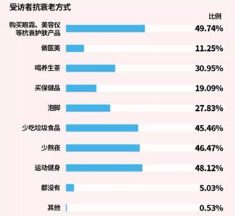 虽说提到“抗老”许多人的第一反应都是护肤,但实际上抗老消费的图谱呈现出了非常多元的方式。
