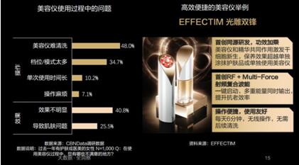 根据CBNData《2021女性抗老投资洞察报告》,高效便捷成为“懒人抗老”的重要考量因素。EFFECTIM玑妍之光的黑科技使其美容仪具有,的即时效果和长期效果,兼具安全与高效的特点。一键启动,6分钟全脸抗老的功能,也满足了消费者对省时省力和功效的追求。
