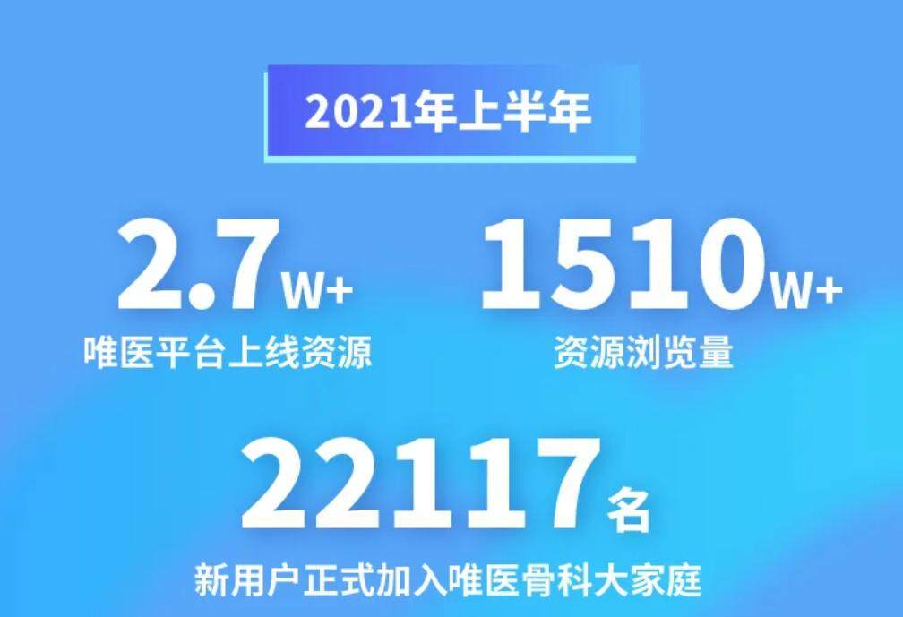 唯医骨科致力于构建中国骨科医疗新生态,而骨科医生是生态的核心环节,助力骨科医生学术教育是唯医骨科的“底色”。上半年,唯医骨科APP吸引新用户超过2.2万,新上线骨科学术类资源超2.7万个,资源总浏览量超1500万。