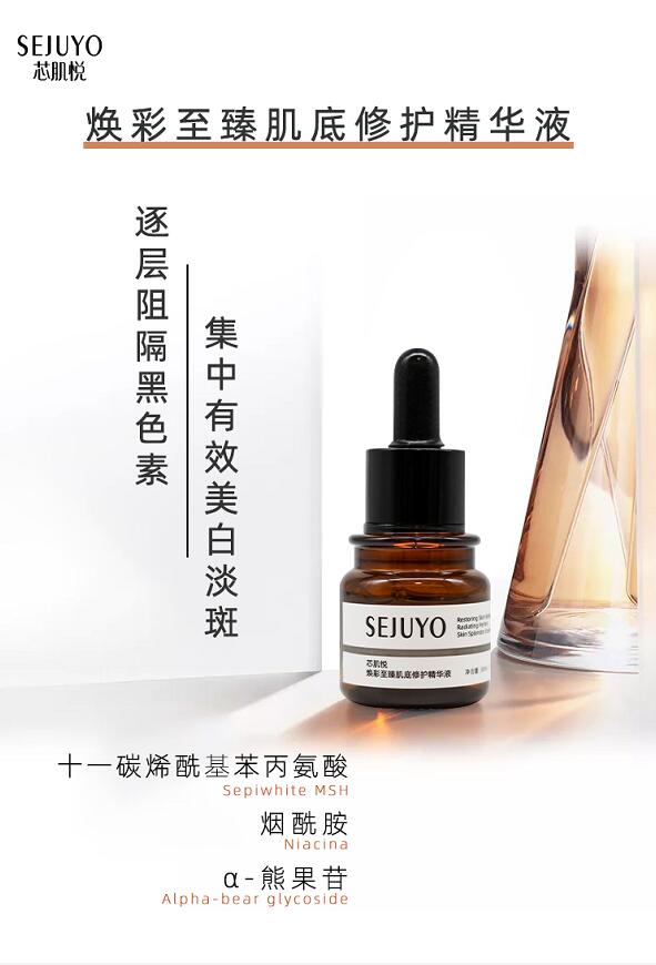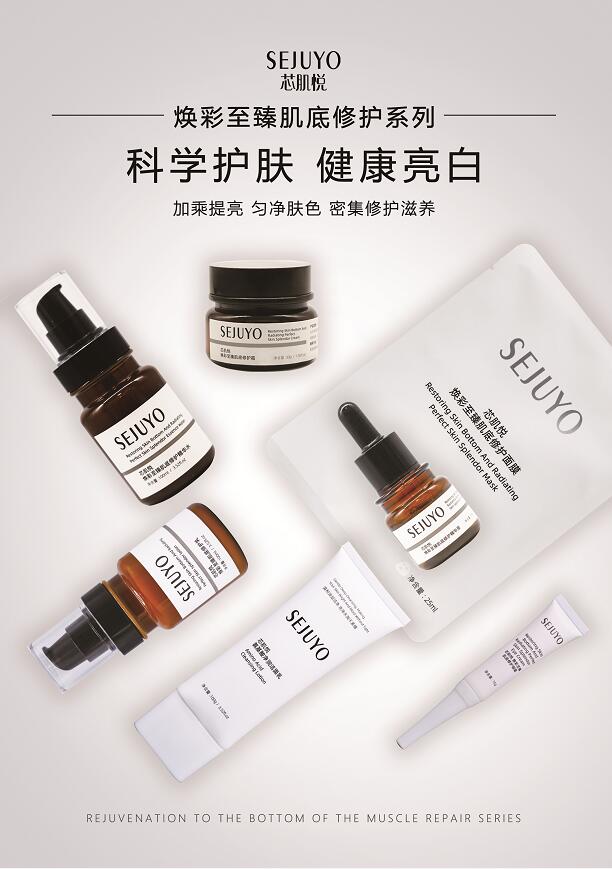 SEJUYO焕彩,肌底修护系列品种齐全,功效显著,具有集中美白淡斑、加乘亮白、深层密集修复滋养的功效,唤醒肌肤美白潜能,帮助解决肌肤所面临的色斑、暗沉、细纹出现、肌肤恢复力和抵抗力持续下降等多种问题,肌肤焕变白皙健康,实现肌肤的一次亮白革命。