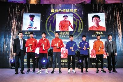 青超联赛各组别最有价值球员上台领奖。中国足协供图