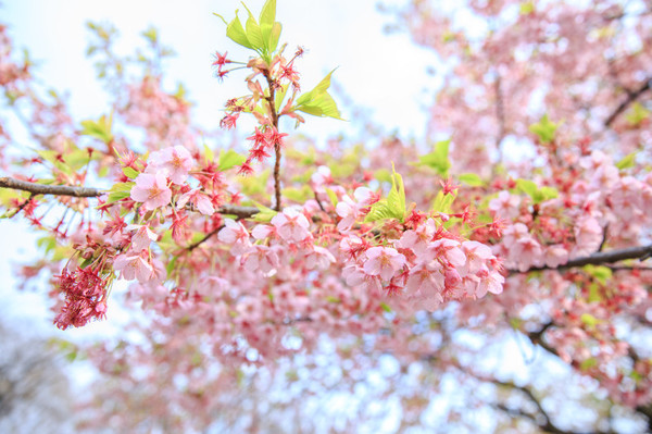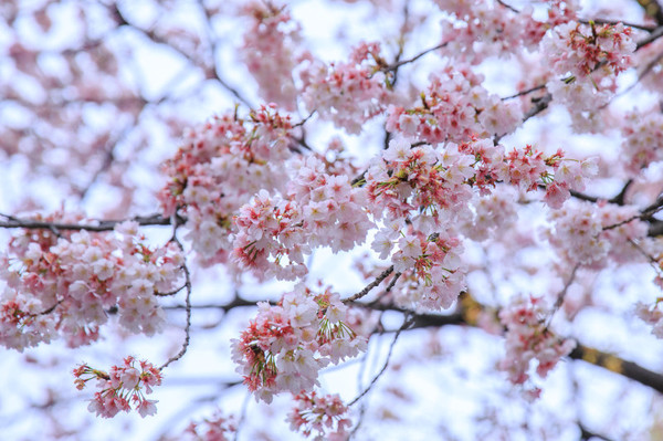 大部分樱花才刚刚开放,有的还是水滴形的花骨朵,脆弱得好像轻轻一碰就会掉了似的。
