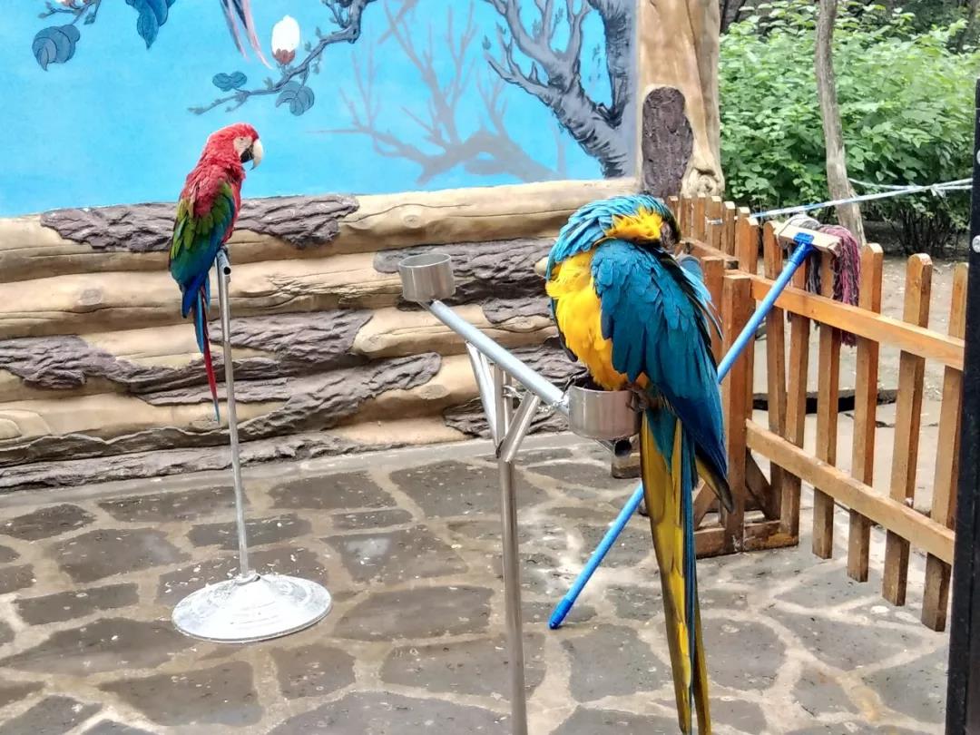 看这两只高傲又美丽的鹦鹉,工作人员说它们都不吃别人给的食物,因为它们是演员,是小明星,骨子里都有那种不食嗟来之食的傲劲。