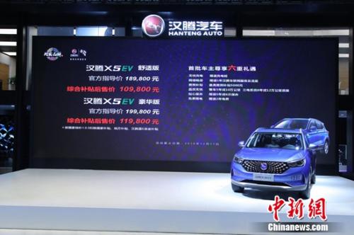 中新网11月16日电 16日,2018(第十六届)广州国际汽车展览会在中国进出口商品交易会展馆正式拉开帷幕。以“蓝E•智见新风景”为参展主题的汉腾汽车在车展正式宣布旗下“新生代品智电驱SUV”——汉腾X5 EV正式上市,共发布舒适版、豪华版和老兵出行定制版3款车型,官方售价分别为18.98万元、19.98万元和20.98万元,舒适版、豪华版综合补贴后的售价分别为10.98万元和11.98万元,老兵出行定制版享受国补后售价为17.58万元。此外,本届车展汉腾汽车首款MPV正式定名为“汉腾V7”,汉腾首款纯电动轿车也同步亮相,加上,亮相的汉腾X5 MAX,家族全系共7款产品亮相。