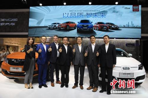 中新网11月16日电 16日, 2018第十六届广州国际汽车展览会开幕。观致汽车携全系车型亮相,并在车展开幕当天发布了两款重磅新品——观致3轿车EV500和观致5 SUV智云互联版。宝能汽车常务副总裁、观致汽车总裁李峰携经营管理团队出席发布会。