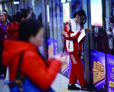 19日早晨,在地铁3号至6号线的站台及列车上,来自武汉六中、一中、建港中学的学生及部分乘客,抓紧时间晨读,成为地铁轨道交通线上的一道风景线 (金思柳)