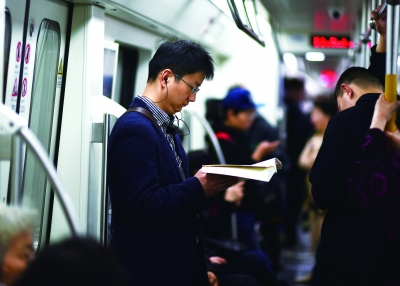 上午9时42分,地铁3号线,一位男士在阅读 金思柳/摄