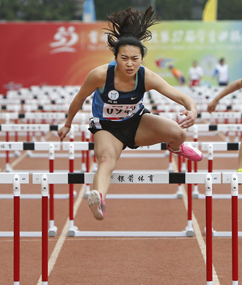 首都高校田径运动会上的精彩瞬间。(丁柏明/摄)