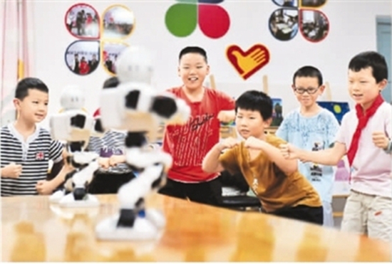 8月2日,湖北省宜昌市夷陵区一场以“留守儿童与机器人共舞”为主题的暑期“红领巾课堂”在三斗坪镇园艺村“希望家园”开课,让留守儿童近距离感受科技的魅力,丰富假期生活。 张国荣摄(人民视觉)