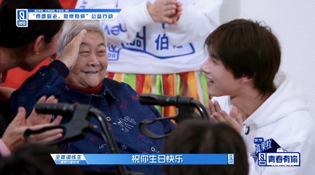 除了陪伴,训练生此行还背负了一个“神秘”的任务——给一个正巧过生日的奶奶准备生日惊喜!为此训练生还专门组成了一个才艺组,除了甜甜的《迷宫》,也和爷爷奶奶们一起合唱《月亮代表我的心》、《甜蜜蜜》等经典老歌,艺术指导团王洁实老师更是在周士原的钢琴伴奏下,为敬老院的老人们献唱了一首《外婆的澎湖湾》!“奶奶生日快乐”,当全体训练生一边清唱生日歌一边献上生日祝福时,奶奶标准的军礼和眼里含着的泪水让网友动容:“我想我奶奶了,这个活动好温暖,特别好!”
