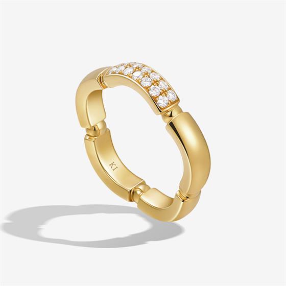 可艾琳娜Blossom绽放钻石女戒一排钻石镶嵌在戒圈上,低调中露着别致。真爱无需浮华于世,只需恒久铭刻于心。