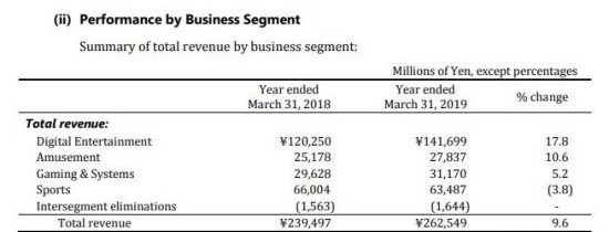 至于科乐美其他方面的收入还包括大家熟悉的“柏青哥”以及体育行业等。