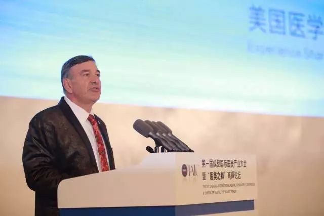 上图为美国医学与整形美容外科协会副会长 Thomas E. Garrison上台发言