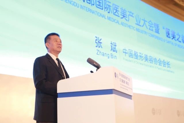 暨“医美之都”高峰论坛大会主席、中国整形美容协会会长 张斌上台发言