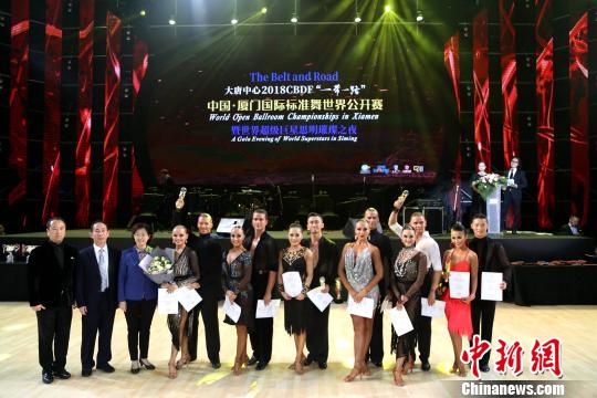 中新网厦门11月3日电 (杨伏山 俞升升)2日晚,中国,以“一带一路”为主题的国标舞国际大赛在厦门举办,来自“一带一路”沿线20多个国家的5000余名,选手受邀参赛。