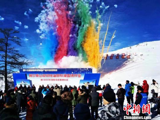 阿尔泰山可可托海国际滑雪场开业暨1000米落差雪道首滑仪式现场。 陈英 摄