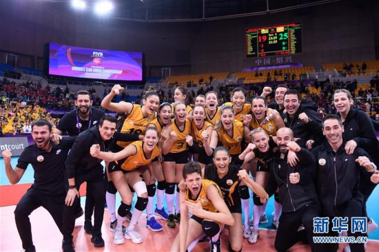 12月9日,土耳其瓦基弗银行俱乐部成员在夺冠后庆祝。 新华社记者黄宗治摄