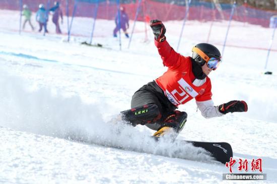 资料图:2018-2019国际雪联单板滑雪平行项目,在河北省张家口市崇礼区云顶滑雪公园展开 武殿森 摄