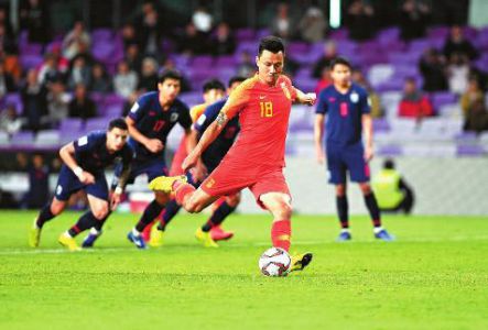 此时,老谋深算的里皮突然换人,而此次换人收到奇效。第66分钟,刚换上场的高中锋肖智利用对手不熟悉他的技战术特点,在对手对他盯防不紧的之际,潜入禁区内第一次触球就破门,国足1:1扳平比分。进球后的国足没有给对手任何喘息的机会,第70分钟,郜林突入禁区被绊倒,获得点球,郜林亲自操刀命中。国足2:1反超比分。补时阶段,泰国队发动,的反击,国足坚持到,,以2:1获胜,成为继越南之后,第二支进军亚洲杯八强的球队。 华商报记者 梁军
