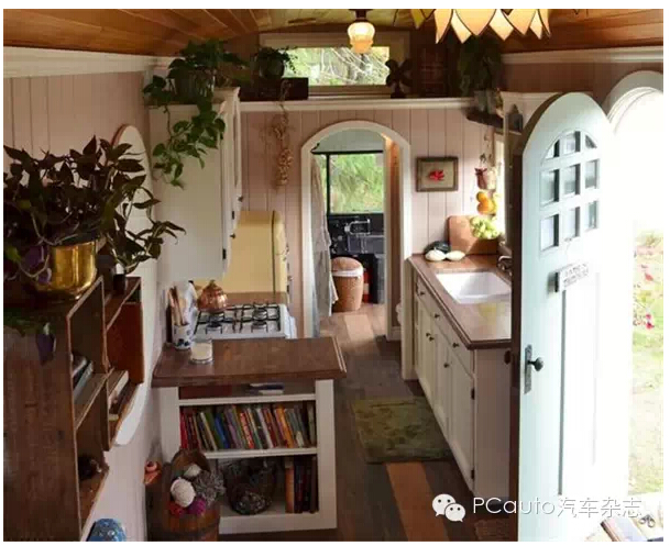 如果没有前面的了解,只是看到这些图片,相信很多机友都会跟杂志君一样,以为是到了某个人的家里参观了。这真的不是房子?太温馨了吧!校车内部的改造由妻子的姐姐、姐夫共同设计。杂志君只想说:姐姐姐夫,也帮我设计一个家吧。