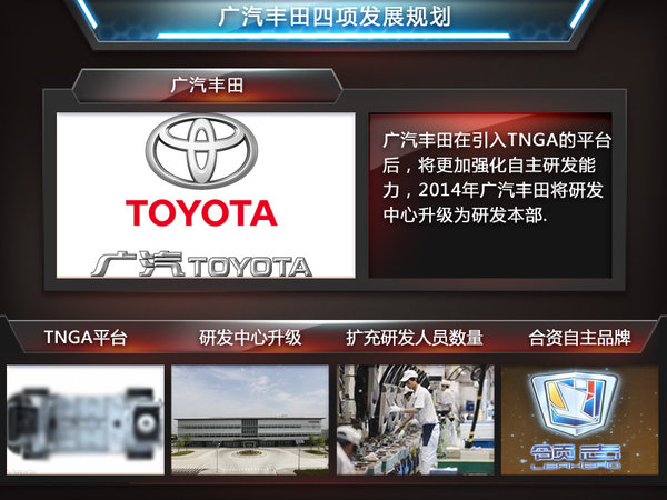 在加强中小型车的同时,广汽丰田未来将推出更多混合动力车型,未来将逐步实现主流细分市场的全覆盖,2015年广汽丰田将推出、中级车的混合动力版产品——雷凌。