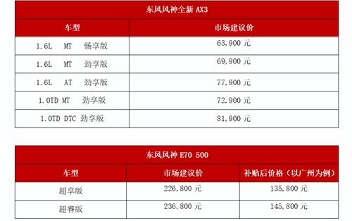中新网11月16日电 今日,第十六届广州国际汽车展览会开幕,东风风神携东风猛士、“五化”战略概念车eπ、AI生态SUV全新一代AX7及多款旗下主力车型登场。在主题为“新风神 新动力”的广州车展新闻发布会上,东风风神正式推出了售价6.39万元-8.19万元的国民多功能SUV全新AX3,以及售价22.68万元-23.68万元(以广州为例,补贴后售价13.58万元-14.58万元)的超能纯电动中级车E70 500。传统动力和新能源动力齐头并进之势下,彰显出东风风神雄厚的技术实力。
