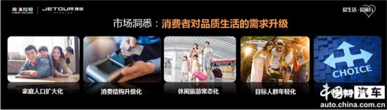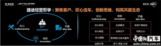 捷途是奇瑞控股集团顺应家庭人口扩大化、消费结构升级化、休闲旅游常态化、目标人群年轻化等趋势,以满足消费者对品质生活需求升级为源点打造的全新产品序列;通过对市场趋势的洞悉,捷途确立了专注和精耕“旅行+”细分市场的定位,并提出聚焦客户、匠心造车、创新思维、构筑共赢生态的经营哲学。