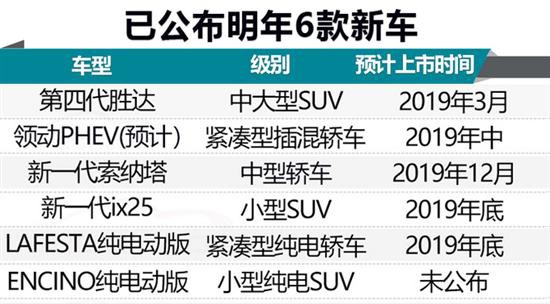 北京现代在2018年开启了“三横三纵”产品布局,并推出了第四代途胜、昂希诺以及菲斯塔等车型。有媒体从北京现代官方获悉,2019年北京现代将要推出8款新车,其中包含3款全新车,2款改款车型以及3款新能源车。