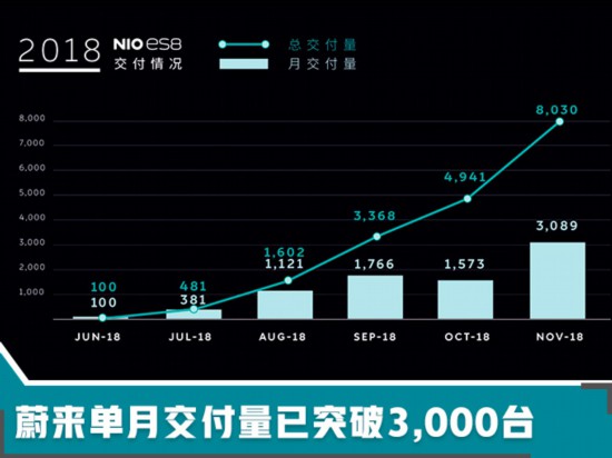 继11月27日第1万台ES8创始版顺利下线后,在本月15日举行的2018蔚来日上,蔚来汽车创始人、董事长兼CEO李斌宣布了,的交付数字:9,727台。在距离年度收官还有半个月时间的情况下,蔚来超额完成1万台目标已是板上钉钉。此外,根据蔚来官方数据,在10月18日-11月18日期间,ES8交付量达到了3,089台,再创历史新高。