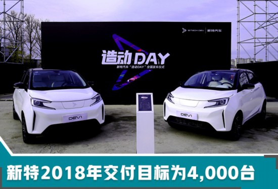 新特汽车于2017年9月成立,目前由中国一汽代工生产,首款量产车型——A0级纯电动轿车DEV1已于今年8月宣布上市,10月31日实现批量交付。截至12月24日,新特DEV 1累计交付超3,000台,第4,000台整车将于近日下线。2019年,新特DEV 1的交付目标将大幅提升至4万台。