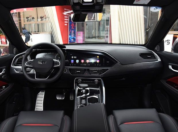 内饰方面,吉利FY11与旗下的博越、缤越都有所不同,采用了吉利,设计风格打造,中控台采用了类似飞翼式设计,,控制区域偏向于驾驶席设计。中控下方的控制区有吉利特征的回形纹设计元素,飞机式档把侧方则是中控大幅手,,现代气息。