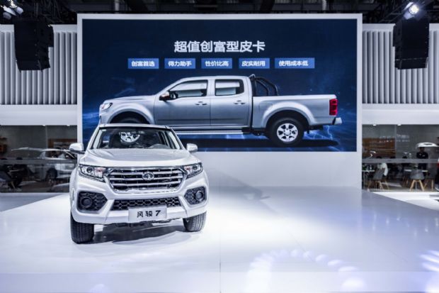 长城风骏7国六柴油版依旧延续了在售柴油版车型的造型,新车的前脸采用了类似哈弗SUV的设计语言六边形镀铬前格栅与雾灯区域相衬,营造出一副威武霸气的前脸形象。中网进气的镀铬装饰条提升了整车质感,看上去威武有力。