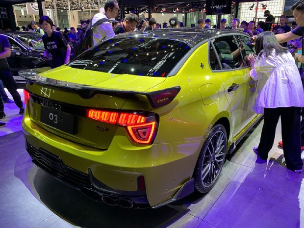 领克03+的长宽高分别为4677(4692)/1840/1461mm,轴距则长达2730mm。此外,这款车还装配了双色轮圈,轮胎规格为245/40 R18。新车的尾部造型同样吸睛,“LYNK & CO”标识镶嵌在能量晶体尾灯之间,无论点亮与否都拥有极强的辨识度。而尾翼、侧裙、车底扩散器的加入配合双边共四出的排气,进一步增添了运动感。