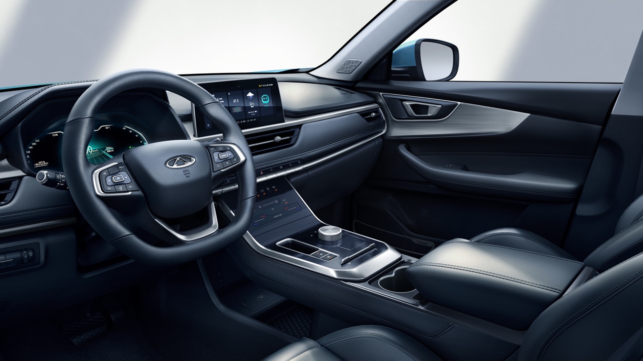 内饰方面,全新瑞虎e采用了整体装饰面板+镀铬饰条+软皮质用料,其中,镀铬饰条还提供灰色和金色两种配色选择,新增流光溢彩氛围灯设计。新车采用了3屏环绕式设计,搭载10.25英寸悬浮式超清中控屏,配合7英寸智联多功能全屏液晶仪表,大大增强了新车的科技感。升降式换挡旋钮则为用户带来仪式感的享受和更便捷的驾驶体验。此外,全新瑞虎e还将配备超大星空氛围全景天幕、手机无线充电、冷暖杯托、负离子空气净化系统等配置,提升用户驾乘体验。