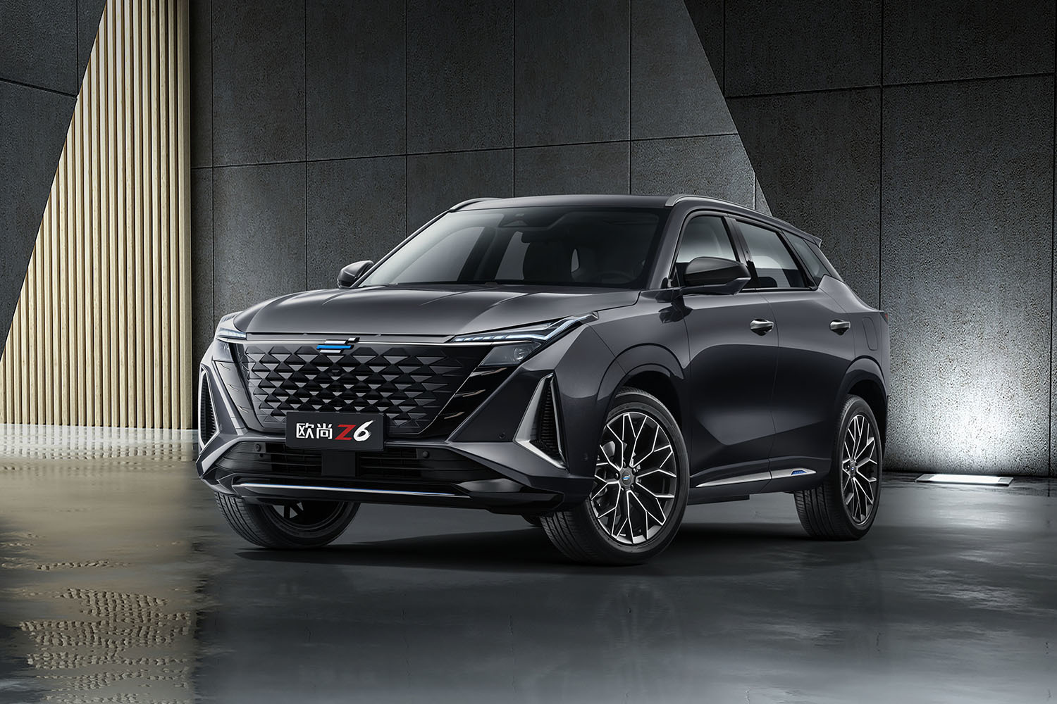 在造型设计上,欧尚Z6采用全新的设计语言——棱·境美学。前脸部分,欧尚Z6轮廓分明、冲击感强烈,时空叠影前格栅的9行15列时光沙漏单元互相咬合,大小、型面、角度都是按等比数列节奏有序扩展,明暗交叠呈现连续变化的趋势,迎合年轻群体对未来感和科技感的追求。前大灯采用立体式设计,单侧36颗,共72颗LED光源,具有流水动态灯光效果,突显智能科技美学。