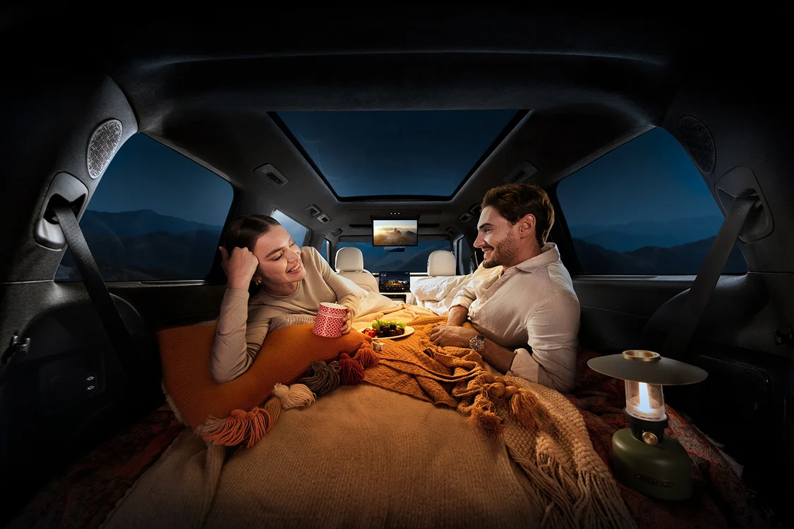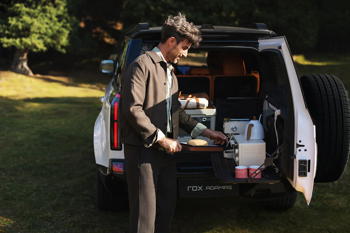 为满足户外爱好者露营的需求,极石ADAMAS的车顶可支持300公斤静态载荷,可加装车顶帐篷、车顶旅行箱或边帐等装备;新车还提供车外V2L 3.5kW+车内220V 2kW对外放电能力,配合全新设计的尾门户外餐吧2.0,集成折叠操作台、模块化收纳、LED照明和一键供水系统,让户外露营烹饪变得更加得心应手。未来,极石汽车还将拓展原厂户外配件生态,包括充气床垫、折叠桌板、专业照明灯,让极石汽车成为不仅是可移动,更是可越野的轮上起居室。