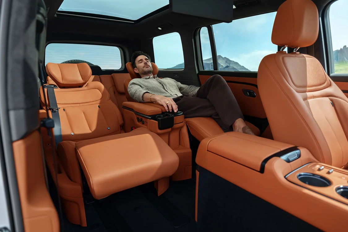 极石ADAMAS强调全地形豪华场景和丝滑户外体验,不仅提供,舒适享受的六座行政布局,还有更聚焦空间灵活性的七座户外全能版,183mm超宽,通道方便第三排乘员进出,后两排座椅可一键放平。