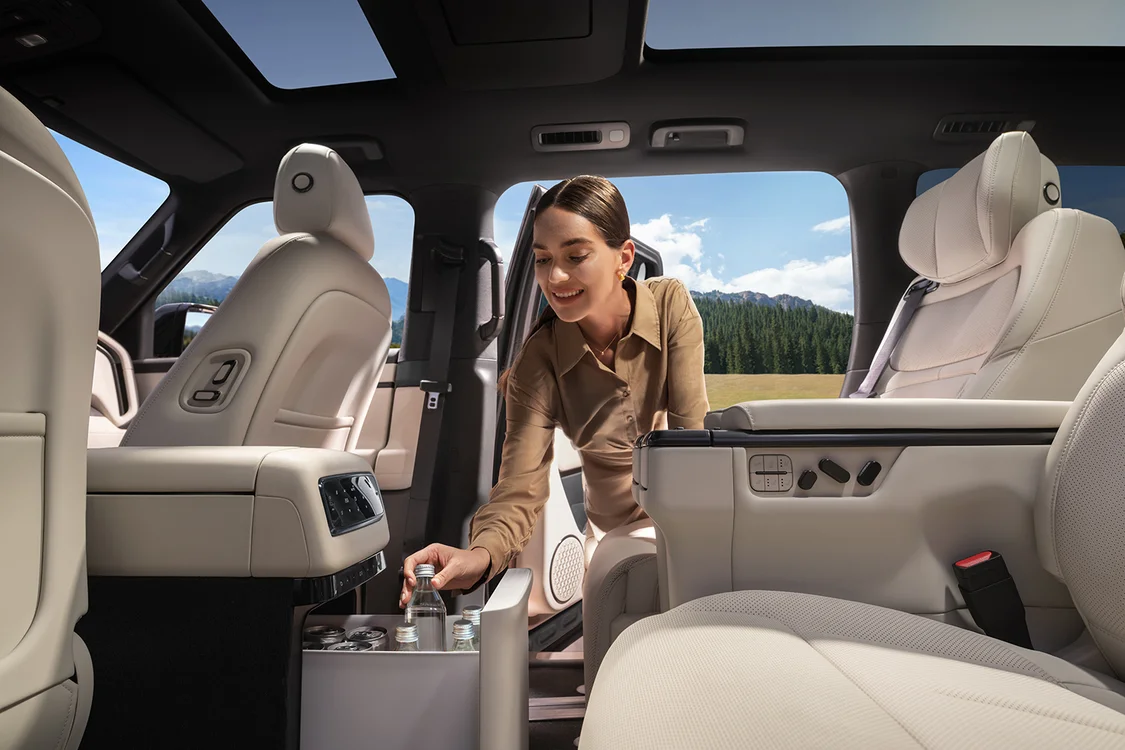 极石ADAMAS的车身尺寸为长5050mm/宽1985mm/高1856mm,轴距长度为3010mm,定位中大型SUV,采用硬朗的方盒子造型彰显全地形的强悍实力,同时又不失新能源车简约的科技观感。新车全系标配静音电吸门,并且在侧开车尾门上整合了全球首创的尾门户外餐吧2.0,配合外放电功能可实现出色的户外生活场景的功能支持和能源补给。