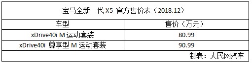 人民网北京12月8日电(鄂智超)近日,宝马宣布旗下全新一代X5正式在国内上市。新车推出了搭载3.0T直列六缸涡轮增压发动机的共2款车型,售价区间为80.99万-90.99万元。