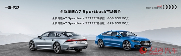 人民网北京12月14日电(吴晓琴)日前,全新奥迪A7 Sportback正式宣布上市,新车定位为“智美新豪华C级轿跑车”。全新奥迪A7 Sportback共推出“A7 Sportback 55 TFSI动感型”与“A7 Sportback 55 TFSI竞技型”两款车型,价格分别为808,800元和879,800元。全新一代奥迪A7基于大众集团MLB Evo平台打造,设计风格和内部科技配置都与全新A8车型看齐。