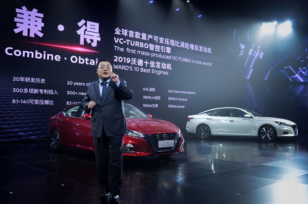 第七代天籁ALTIMA搭载的全球首款量产可变压缩比涡轮增压发动机2.0L VC-TURBO智控引擎,实现压缩比8:1(高性能)-14:1(高效能)智能无级切换,输出同级最强的185kW,功率和380N·m峰值扭矩,配合全新智能XTRONIC CVT无级变速器,带来能效,且低碳环保的动力。日前,VC-TURBO智控引擎荣获2019沃德十佳发动机。