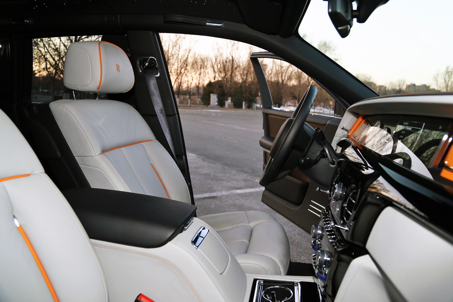 在标轴版幻影上,驾驶与乘坐被视为同等重要的事情。这台由劳斯莱斯Bespoke精心打造的高定车型在前后排创造出截然不同的场景:前排清爽明快,象牙白色的座椅由橙色饰条点缀,活泼而不失雅致。这与暗色系的后排空间着重营造的深私秘境形成强烈反差。